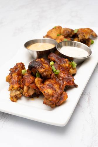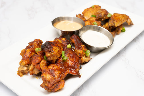 Homemade Wings. Choice are Jerk, BBQ, Buffalo, Fried and Honeyglazed.
