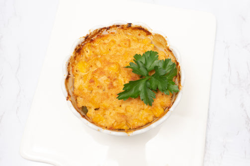 Sweet Corn Seasoned with Veggies in a Creamy Bechamel Sauce.